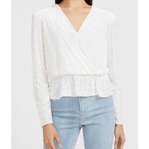 Express Velvet Burnout Leopard Peplum Blouse Long Sleeve Top Women XS NWT