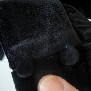 Very nice fit, velvety buttons. Soft. Worn once