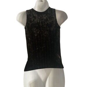 Express Velvet High Neck Tank Sz XS Black Metallic Stripe Keyhole Stretch NWOT