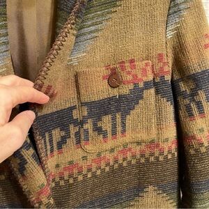 Express Vintage Southwest Western Jacket Blanket Stitch Shawl Collar Tobacco XS