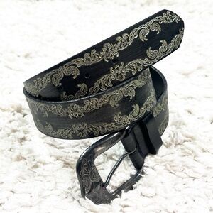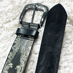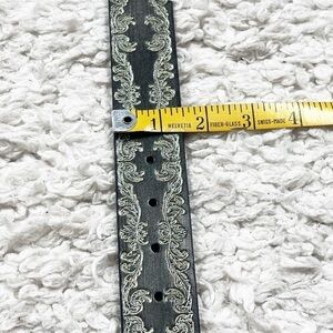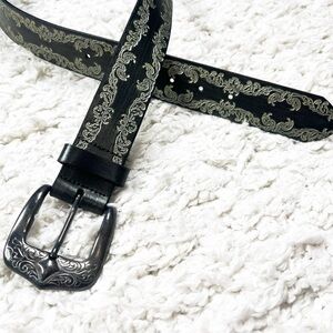 Express Vintage Western Leather Women’s Belt Small Black White Buckle Adjustable