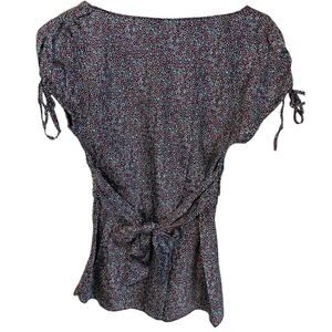 Express Vintage Y2K 2006 Size XS Silk Short Sleeve Babydoll Top Floral Dot