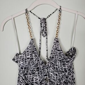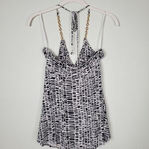 Express Vintage Y2K 2007 Black and White Gold Chain Halter Top Size Small