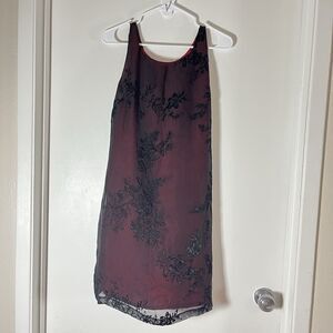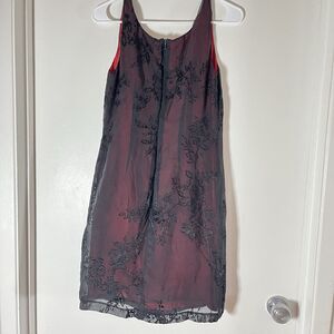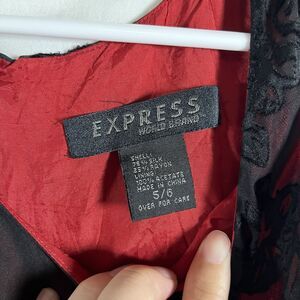 Express Vintage Y2K Silk Feminine Black Red Floral Sleeveless Dress Size 5/6