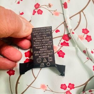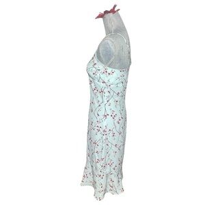 Gorgeous vintage blue/mint midi dress with red and pink cherry blossom print. Spaghetti strap with criss cross back. Zip closure. Babydoll style top. Excellent condition.