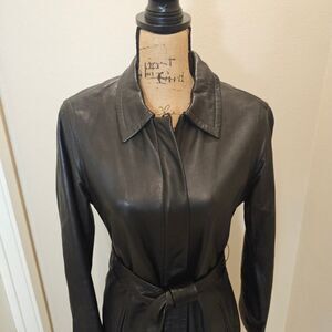 Express Vintage 3/4 Length Zip Front Leather Jacket Size 5/6