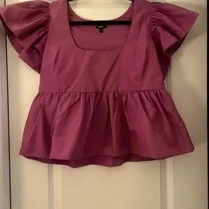 Violet square neck top with ruffle sleeves and waist