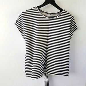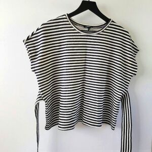 Express Waist Tie Striped Cap Short Sleeves Crew Neck Women's Blouse Size M
