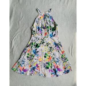 Express Watercolor Floral Fit Flare Dress aquarela floral Size 8 A line sundress