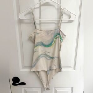 Express White Abstract Body Contour Bodysuit Straight Neck Spaghetti Strap Small