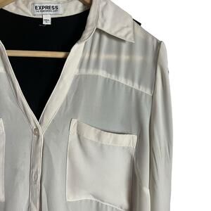 Express White Black Portofino Sheer Long Sleeve Button Up Shirt Size Small