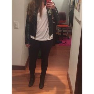 @evita11 sorry!! I've been super busy and completely forgot! But I uploaded the picture. And if you're interested, it looks really good paired with the leather jacket I'm also selling. The shirt runs a little long but not too much (Im also short so it could be that 😂)