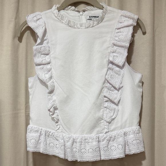 Express White Eyelet Ruffle Cropped Tank