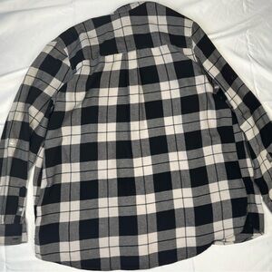 Express - White, Grey, and Black Plaid Long Sleeve Button Up Shirt. Size Large. The only flaw noted at this time is the pink mark on the sleeve, either than that this shirt is in great condition.