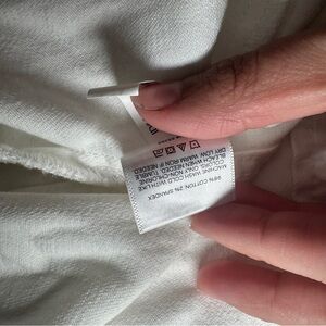 Stylish white jean jacket. Features button closure. Classic design with chest pockets.