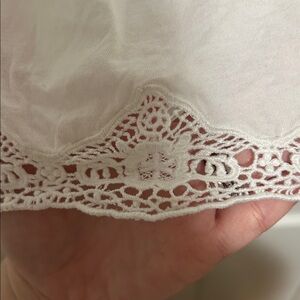 Chic white ruffle top with delicate lace trim. Perfect for summer.