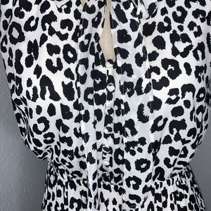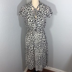 Express White Leopard Animal Print Midi Work Flutter Sleeve Dress size Small