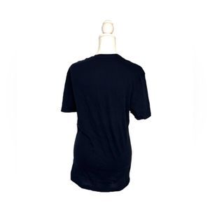 Express white lion animal with light blue circle marble print outline graphic solid black casual daily everyday short sleeve basic simple tee shirt top size extra small.
