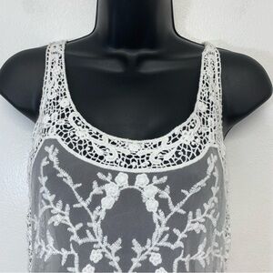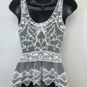 Express White Mesh Crochet Tank Top Woman XS Sheer Cottagecore Feminine Y2K