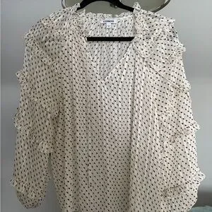 Express White Patterned Ruffle Blouse