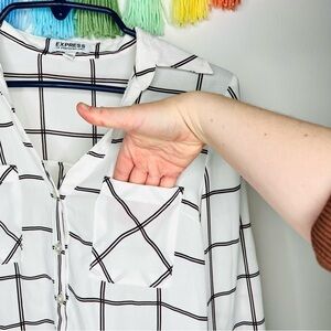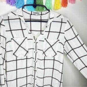 Title: Express White Plaid Double Breasted Portofino Dress Shirt Size Extra Small