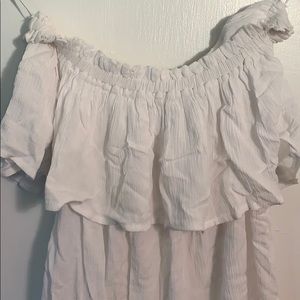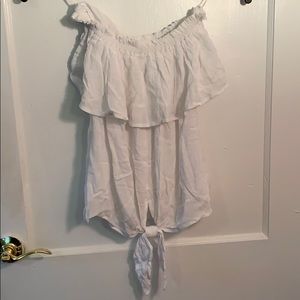 Stretchy feel , 100% Rayon, tie at bottom, fits to body shape, super cute, worn formally or casually, size xs, I’m 5’3, usually wear small, fits perfectly.