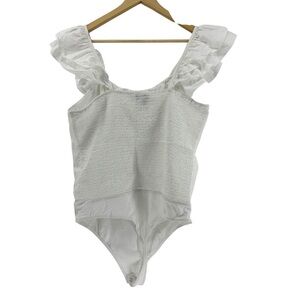 Express White Ruffle Collar Off Shoulder Bodysuit
