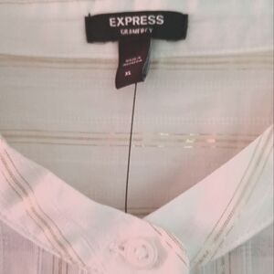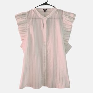 Chic white top with ruffle sleeves. Button-up front. Perfect for casual outings.