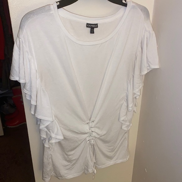 Express White Ruffle Top Size Medium