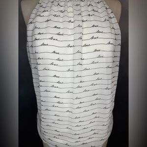 This cute and casual top by Express is perfect for warmer days! Featuring a white background with a chic "love" print in black, this top adds a fun and romantic vibe to any outfit. The halter design includes a tie-back closure, creating a flattering fit that you can adjust for comfort. The lightweight fabric ensures all-day comfort and breathability.