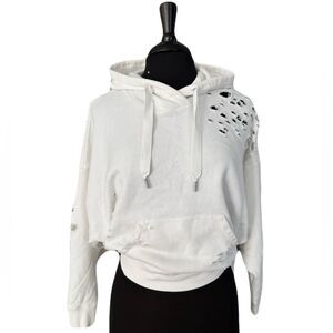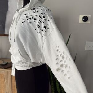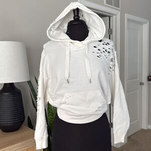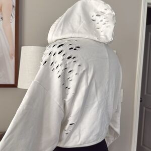 Express White Terry Cloth Cropped Distressed Hoodie