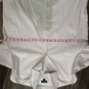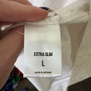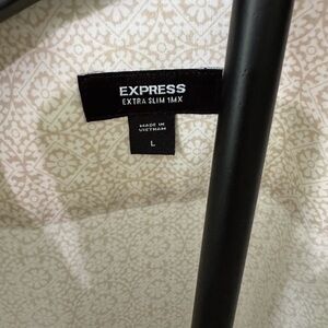 This Express dress shirt features a crisp white color and a textured fabric that adds a touch of sophistication to its minimalist design. The traditional collar and clean lines make it a versatile choice for both formal and casual occasions.