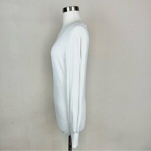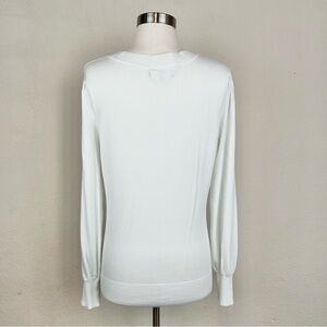Express white v-neck long-sleeve sweater in a size medium. Recently dry cleaned. Perfect preowned condition!