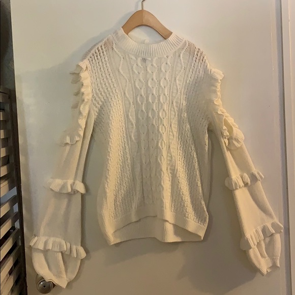 Worn once but still in amazing condition. It has shoulder holes with frills on the sides.