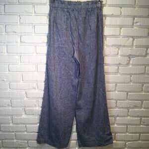 New with tags linen/cotton blend blue chambray pull on pants. Has belt loops and side seam pockets. High-rise. Inseam is 31”. Tagged size small.