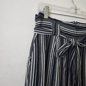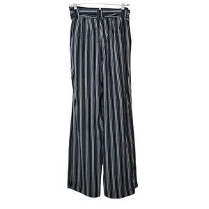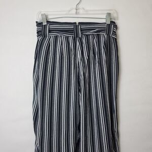 Express Wide Leg Pants Size 8 High Rise Black White Striped Belted Work Career