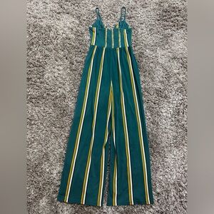 Express Wired Striped Wide Leg Jumpsuit in Teal/Yellow, Size XS