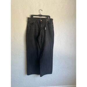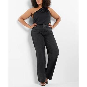 Express Woman Black High Waisted Washed Black Wide Leg Jeans, Size 14R