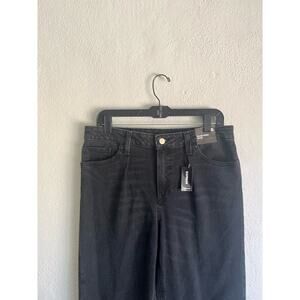 Express Woman Mid Rise Washed Black Pleated Baggy Tapered Jeans, Size 8L