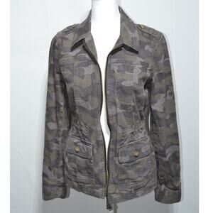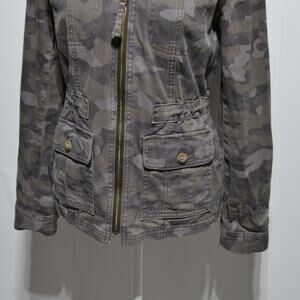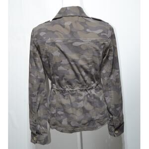 Get ready to conquer your day in style with this fantastic Express women's full-zip camo military utility jacket! This jacket is in excellent condition and ready for a new adventure. It features a flattering cinchable waist for a customized fit and practical front pockets to keep your essentials close.