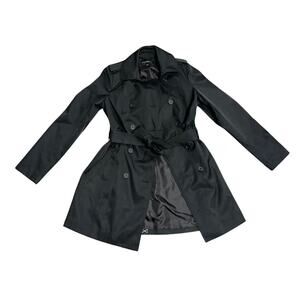 Express Women Black Double Breasted Belted Button Trench Coat SIze Medium