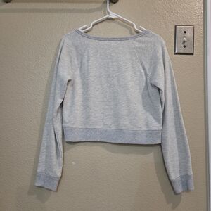 Express Women Cropped Sequin Lace Owl Heather Grey Pullover Sweater Size Small