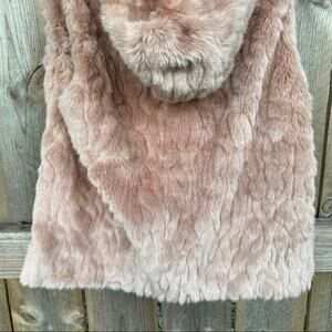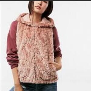 Express Women Faux Fur Vest Hooded Pockets Sleeveless Hook & Eye Pink XS/S NWT