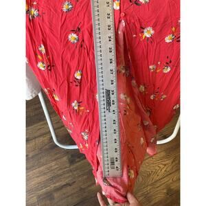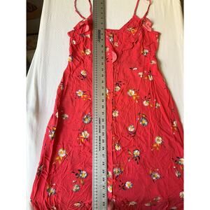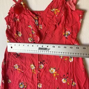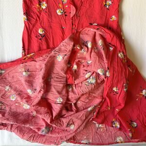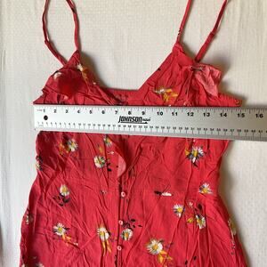 Express Women Maxi Dress M Red Floral Sundress Button Sleeveless Slit Front