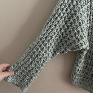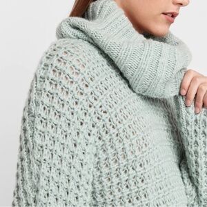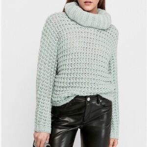 Express Women S Light Blue Open Stitch Chunky Knit Oversized Cowl Neck Sweater.