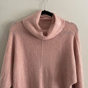 Express Women S Light Pink Waffle Knit Thermal Wedge Turtleneck Sweater NWT