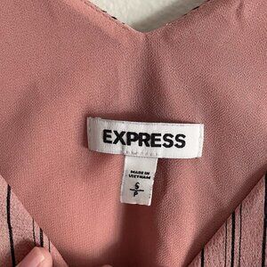 Express Women S Pink Rose Gold Striped Satin Lightweight V-Neck Camisole Top