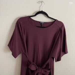 Express Women SZ L Plum Short Sleeve Front Tie Waist Belted Sheath Dress