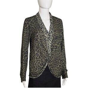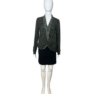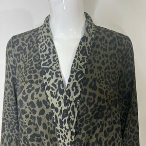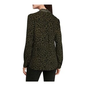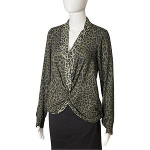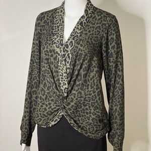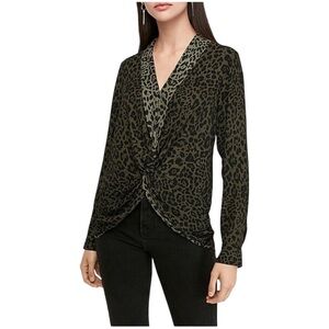 Express Women Size XS Blouse Green Black Animal Print Twist Front Long Sleeve