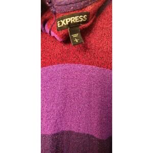 Express Women Striped Multicolor Metallic Short Sleeve V-neck Sweater Size L